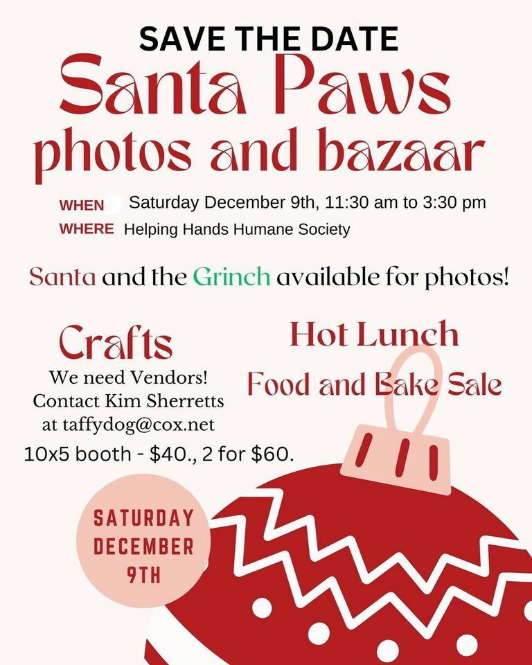 You can bring your pet to take a picture with Santa or the Grinch, relish delicious sweets from the bake sale, and browse unique items from vendors for pet treats and accessories.